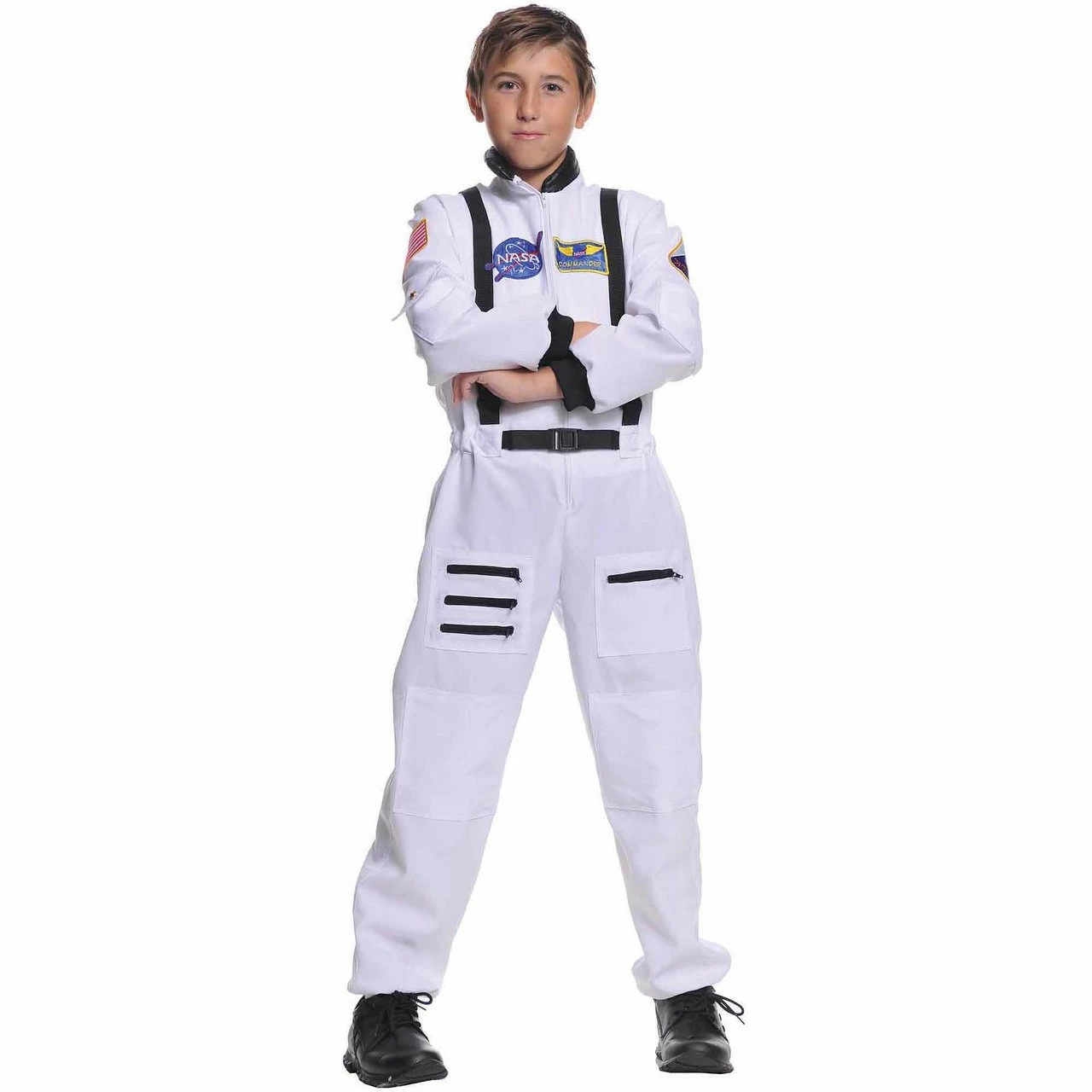 This NASA-inspired white jumpsuit with replicated NASA embroidered patches is an inspiring and imaginative way for your little one to realize their dreams. Includes NASA inspired full-body jumpsuit with American Flag and Mission patch on shoulder.