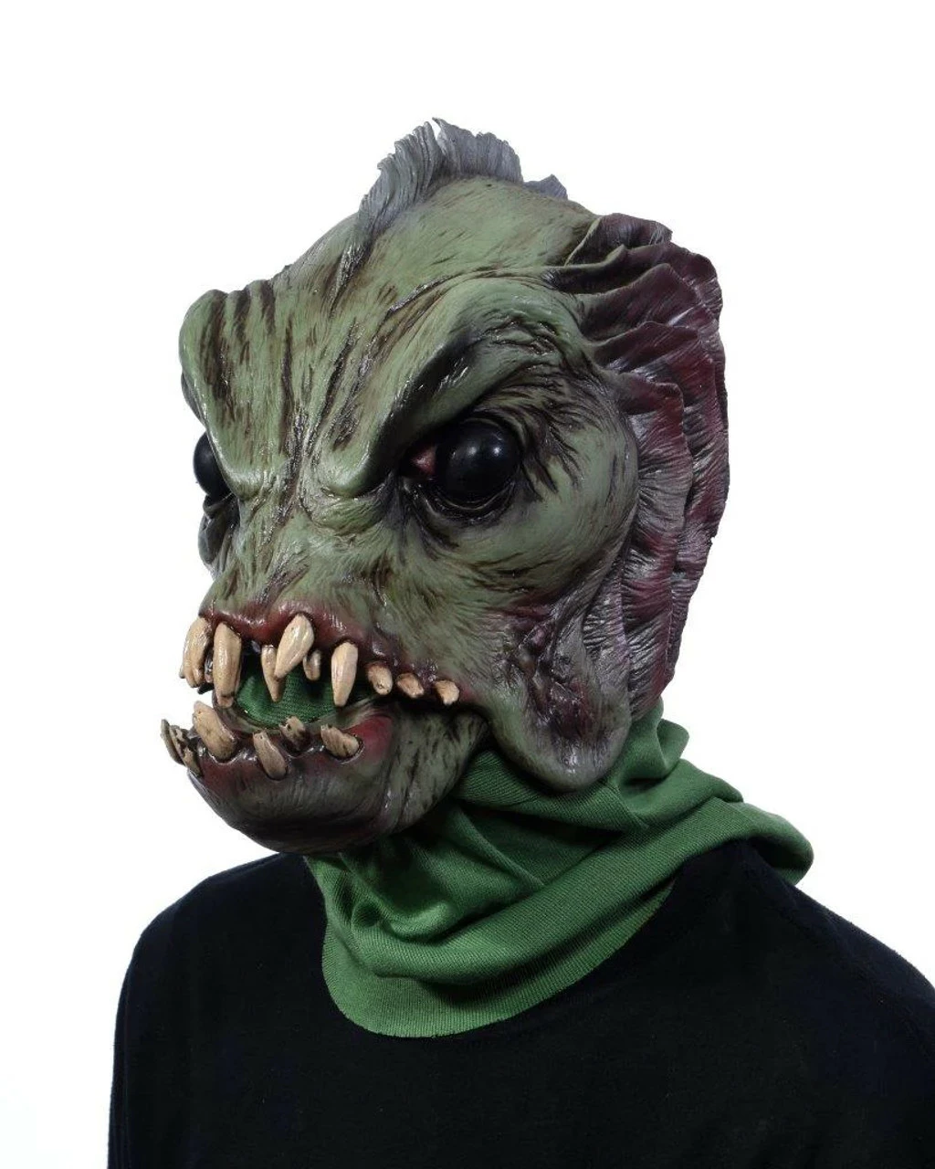 Adult Deep Sea Mask Includes: This classic sea creature has a latex front on a green print polyester head sock. The moving mouth and back head extension are great added features. The hidden eye openings provide visibility that is slightly limited. Hand poured, painted and assembled in the US.Available Sizes: One size fits most adults.