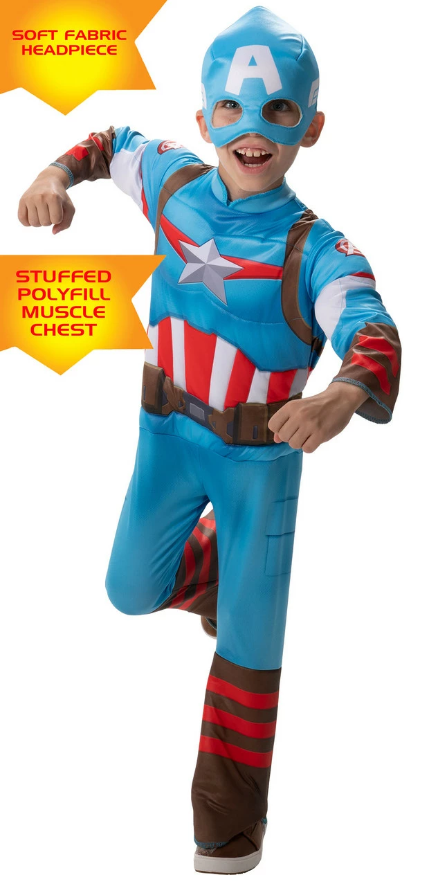 Suit up and get ready for action and adventure dressed as Marvels Captain America . The outfit comes straight from the designs seen in Marvel, and includes everything you need to transform yourself. If your Costume ever gets stained be sure to Hand wash with cold water by hand. The Blue, Printed Padded Polyester Marvel Costume from the Marvel Universe is just what you need to showcase your own unique style!